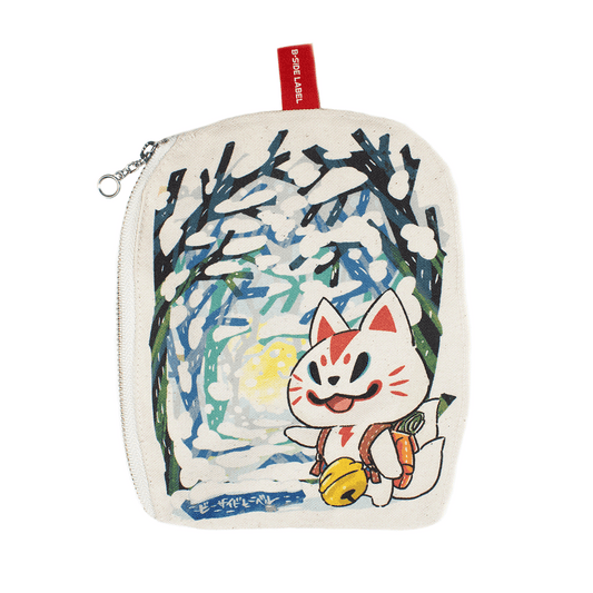 (冬企画)手描きおいなり森の奥へ/ファスナーポーチ
