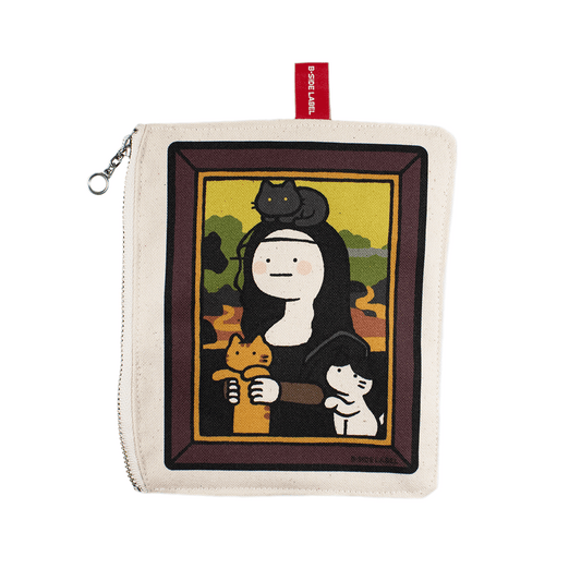 (ネコ企画)真顔絵画黒髪黒服と猫達/ファスナーポーチ